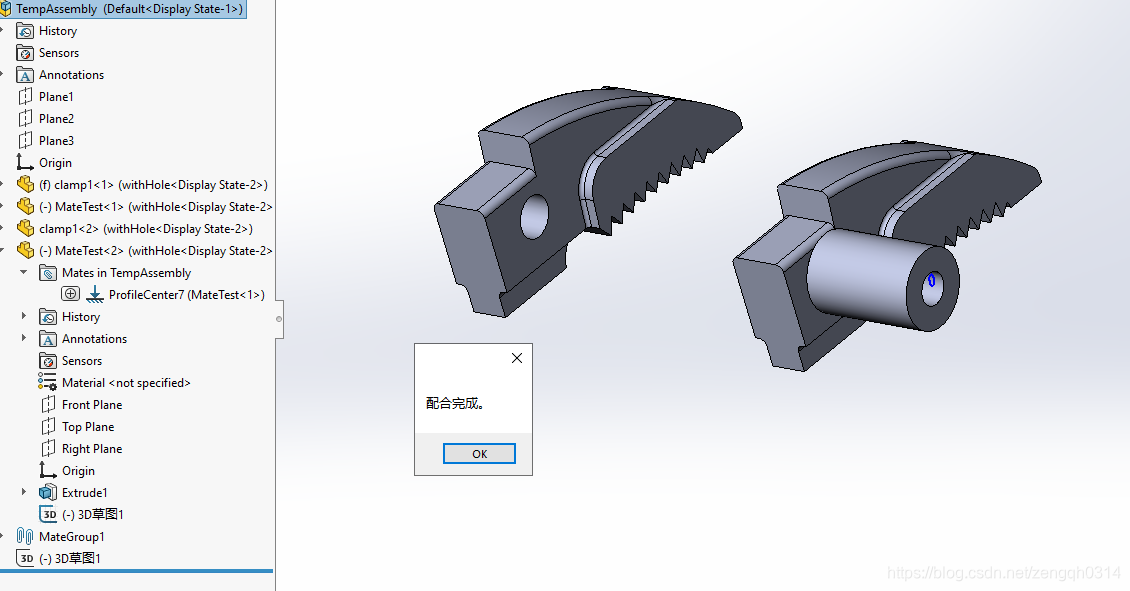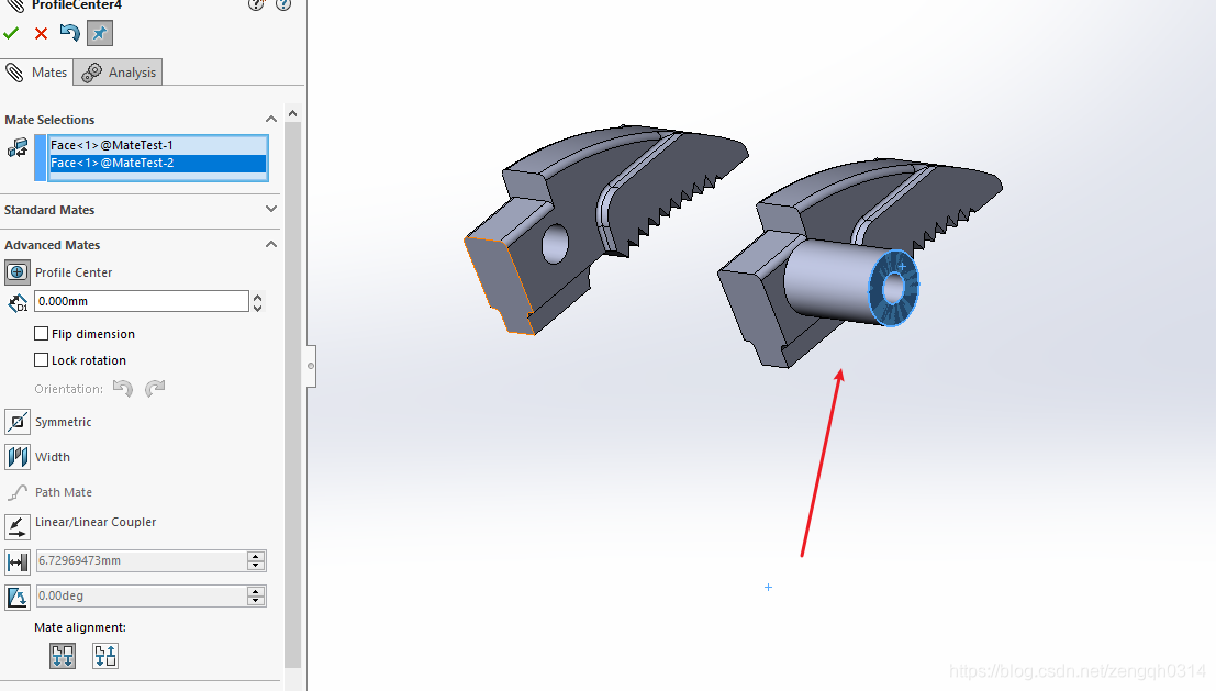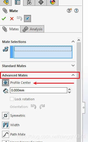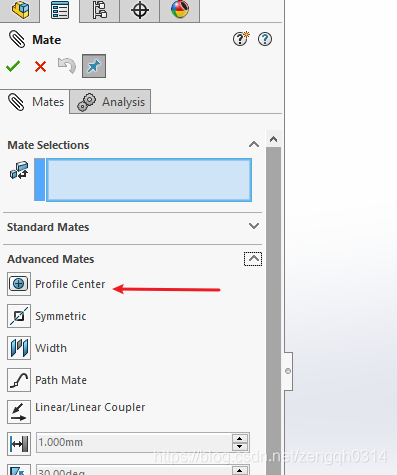 点击Mate ,切换到高级配合中的轮廓中心配合。
