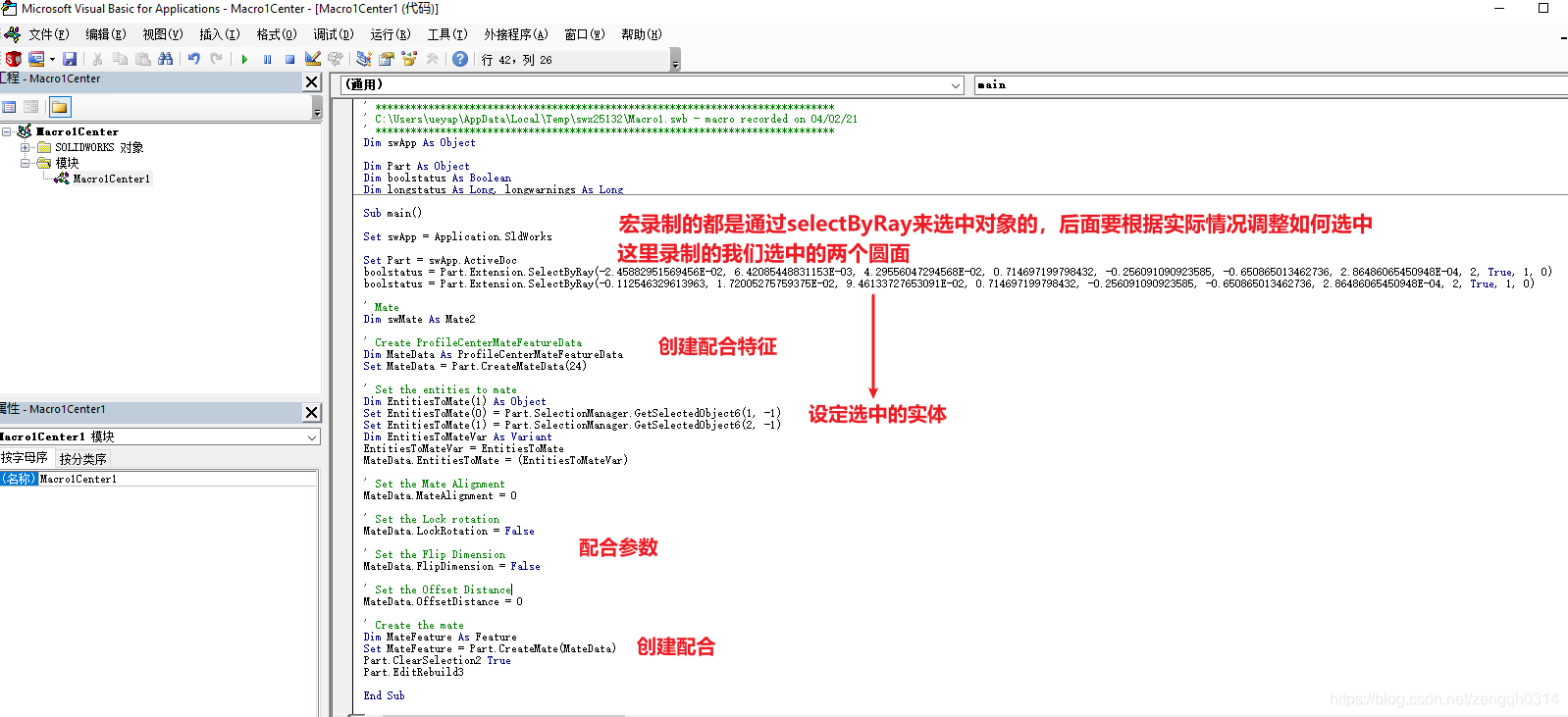 直接在VBA宏编辑器中按F5,Solidworks就再次把这个面中心的配合做好了。