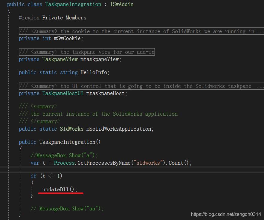 需要在实体这个类的时候就去更新,这时solidworks只是加载了这个update.dll